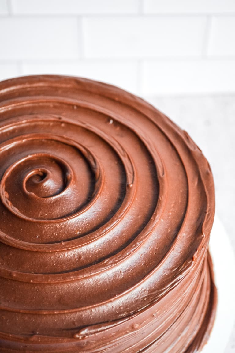 Pastel de chocolate con relleno y cobertura de ganache de chocolate semiamargo.